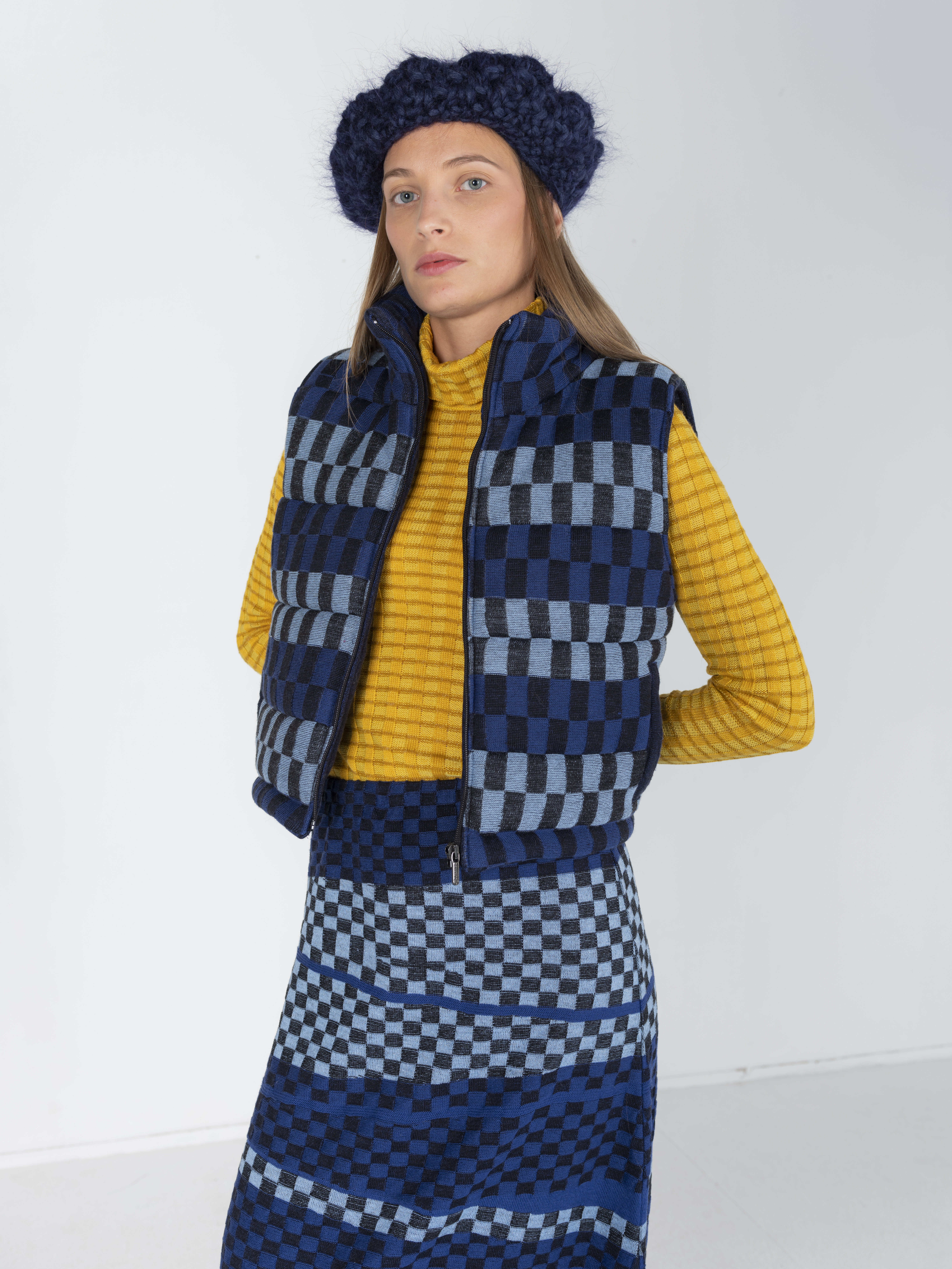 Fall/winter collection Layers of play - knitted puff jacket with textured checkered pattern and pockets. Regular fit
