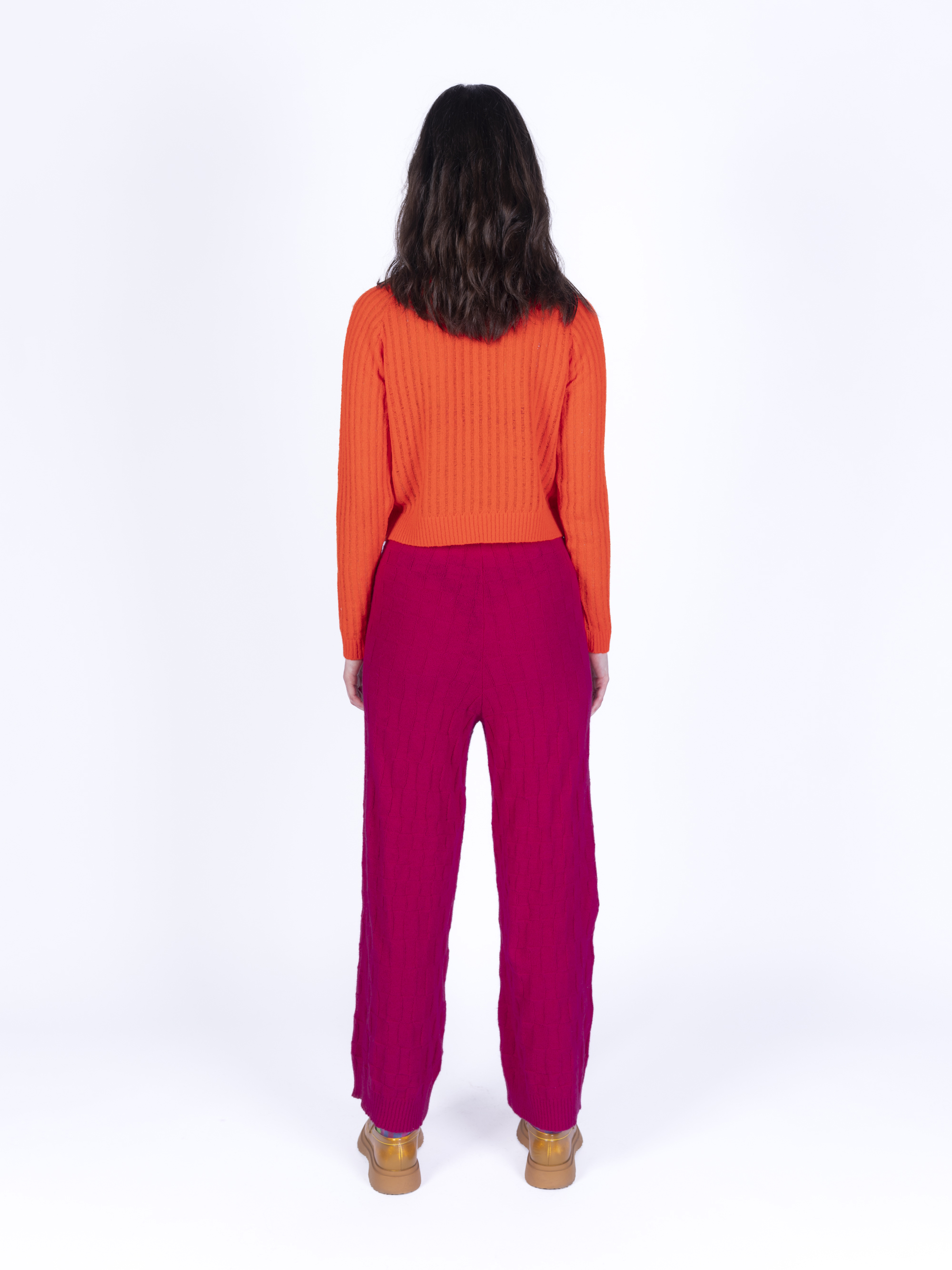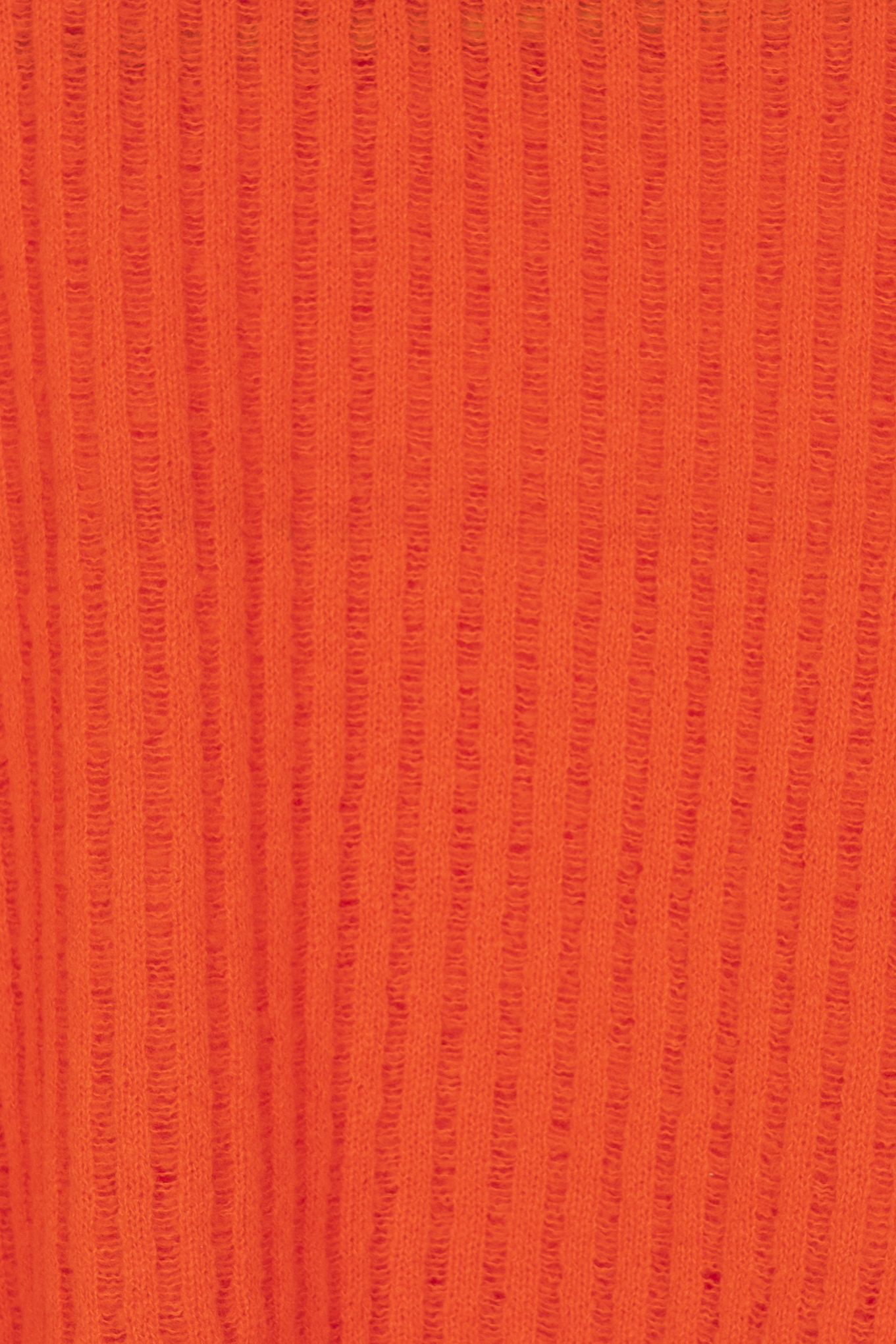 Fall/winter collection - knitted raglan mohair sweater in brigth orange color made from production waste yarn. Cropped length